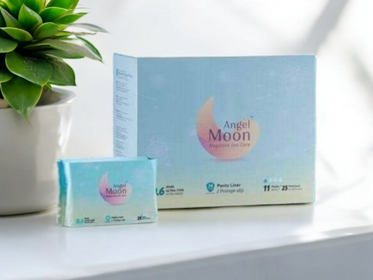 Angel Moon est la solution parfaite pour répondre aux diverses préoccupations liées à l’utilisation des serviettes hygiéniques. La propriété antibactérienne de l’anion et les matériaux certifiés sans additifs assurent un contact sain et sûr avec notre peau fragile. En termes de confort, de ventilation et de capacité d’absorption, Angel Moon répond aux attentes de toutes les femmes en matière de serviettes hygiéniques de haute qualité.